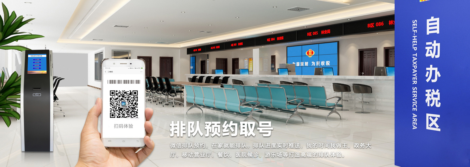 一、系統(tǒng)背景目前,大部分辦事大廳的排隊方式為傳統(tǒng)取號,即客戶需到大廳里通過取號機獲取相應的業(yè)務排隊序號。這種排隊取號的方式能很好的解決在辦理業(yè)務中所遇到的排隊擁擠和混亂等現(xiàn)象,但是其劣勢也比較突出:1、排隊時間的不確定;2、進廳之后發(fā)現(xiàn)排隊等候隊伍很長;3、去辦事大廳辦理業(yè)務,花半小時到達辦事大廳,取號,再等30-60分鐘甚至兩個小時時間,最后花10-15分鐘甚至更少時間用于實際辦業(yè)務;4、還有的人取了號,出去辦事,估摸著時間折返回辦事大廳,時間的拿捏當然是很困難的,因為你無法準確的估算每個人辦業(yè)務花費的時間,人數(shù)越多,這種時間越難把握。匯通微信預約排隊系統(tǒng)方案給排隊帶來極致體驗。二、系統(tǒng)概況......