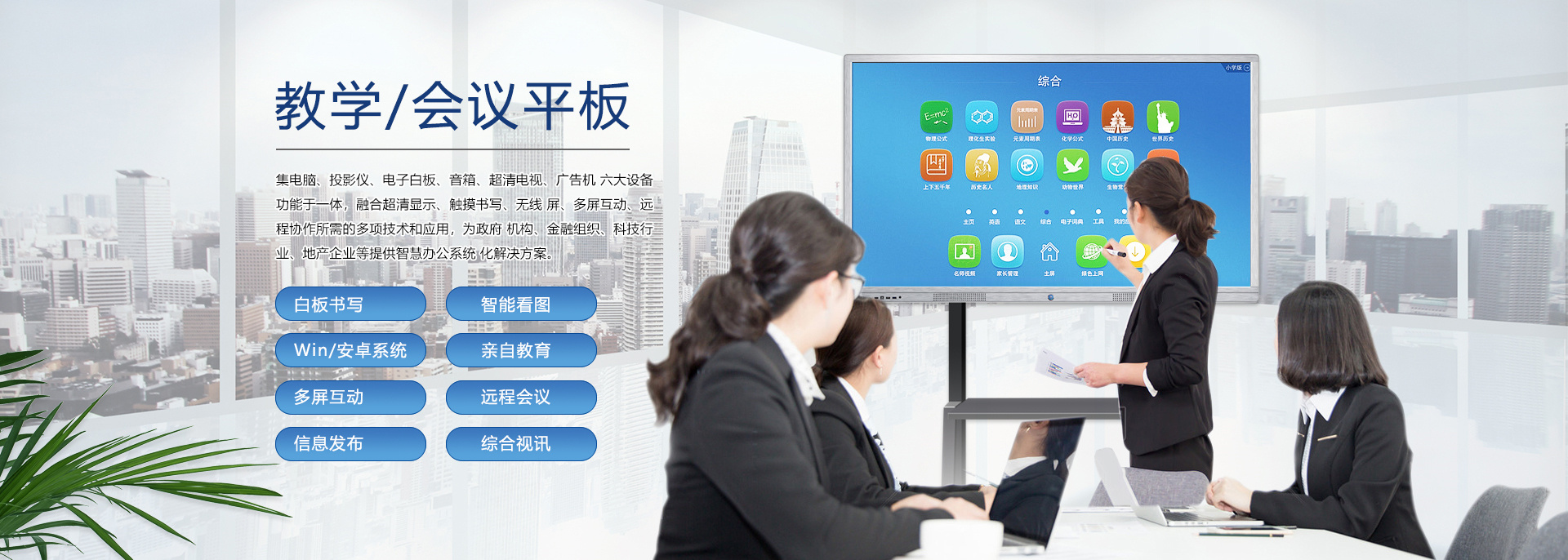 在信息急劇膨脹、互聯(lián)網(wǎng)快速發(fā)展、競爭愈加激烈的商業(yè)社會,“開會”已經(jīng)成了職場人士最為熟悉的一種工作方式。尤其是企業(yè),工作中需要通過許多大大小小的會議交流信息、解決問題和作出決策。會議的最終目的是提高企業(yè)運作的效率,但是許多的企業(yè)卻往往陷入了“低效率”的泥潭。場景一:在與客戶的洽談會上!準備好的PPT竟發(fā)現(xiàn)打不開了!場景二:開會啦!與會人員陸續(xù)進入會議室,人手一疊厚厚的資料,一時間,整潔干凈的會議室一下子沸騰起來,會議討論聲,不停翻找資料的刷刷聲好不“熱鬧”!場景三:炎炎夏日,在小“黑”層里,投影機發(fā)出陣陣熱浪,讓周圍本就燥熱的人更加的心浮氣躁,久久不能平靜下來,更何從談起會議質(zhì)量!場景四:遠程......